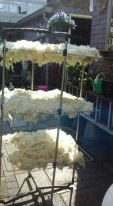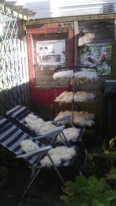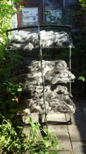 Zo eerst het schapenvacht uitgespoeld en drogen in de buitenlucht